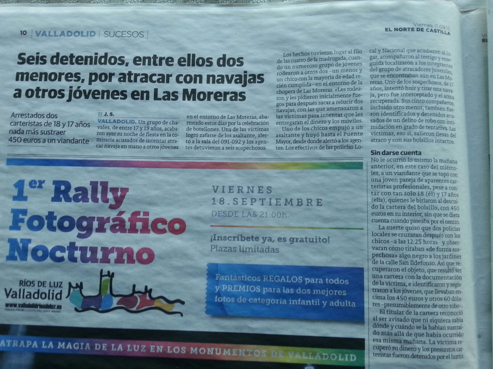 Mi respiración se acompasó, me detuve para seguir hablando, y empezaron a darse las coincidencias. Me llamo igual que el tipo de la cartera, tengo el mismo dinero que ellos llevaban encima, etc. Yo soy el viandante despistado. El policía municipal me avisó que estaban al lado de mi casa, que habían ido a buscarme a mi hogar, para devolverme lo mangado, que estaban detenidos y que si ponía denuncia que les meterían en vereda. Ideal, oye. Subí a comisaría de Parquesol, y me atendieron como si fuera un marajá. La víctima, yo era la víctima. Y ellos los desalmados.