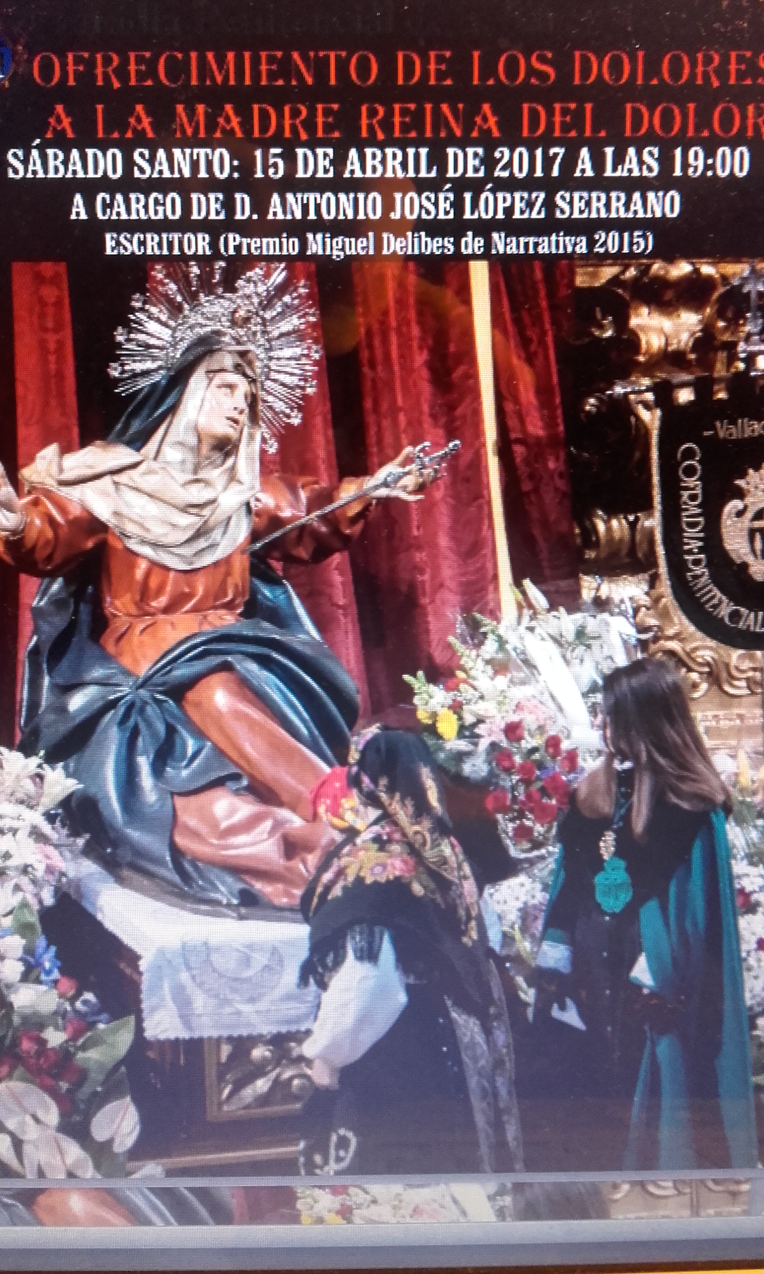 El Sábado Santo en el Templo de la cofradía de la VERA CRUZ, la más antigua de Valladolid, a las 19 de la tarde celebraremos el OFRECIMIENTO de los DOLORES  a la VIRGEN que talló Gregorio Fernández con prodigiosa mano, y que veneramos cientos de valllisoletanos. Un honor.